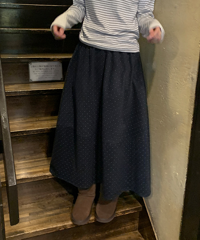 [무료배송] 디케인 도트 플레어 밴딩 롱 스커트