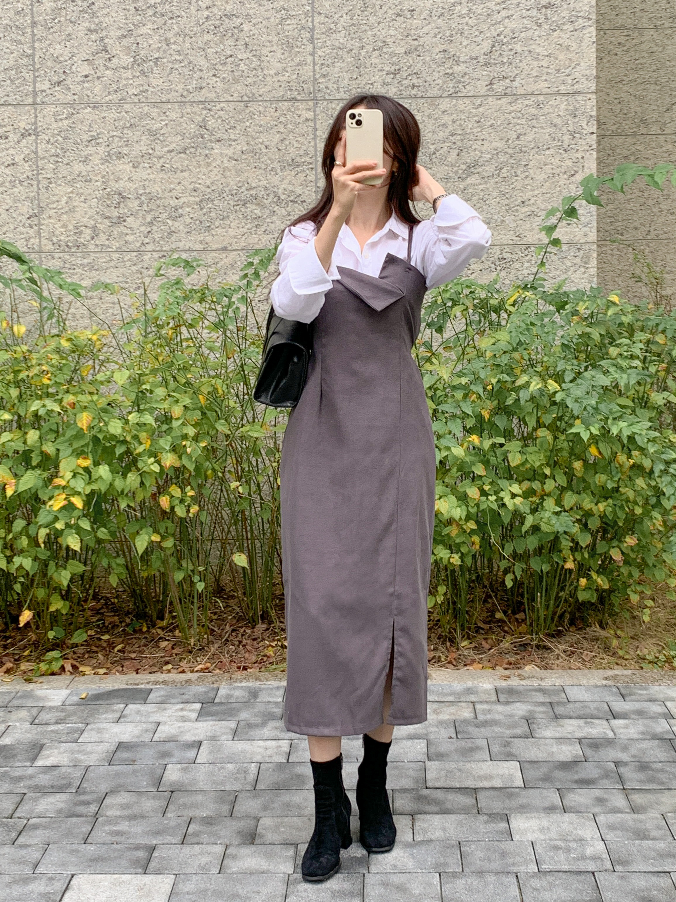 [🚀당일출고] 언발 뷔스티에 롱 원피스 나시 레이어드 봄 가을 겨울 오피스룩 결혼식 하객룩 무지 베이직