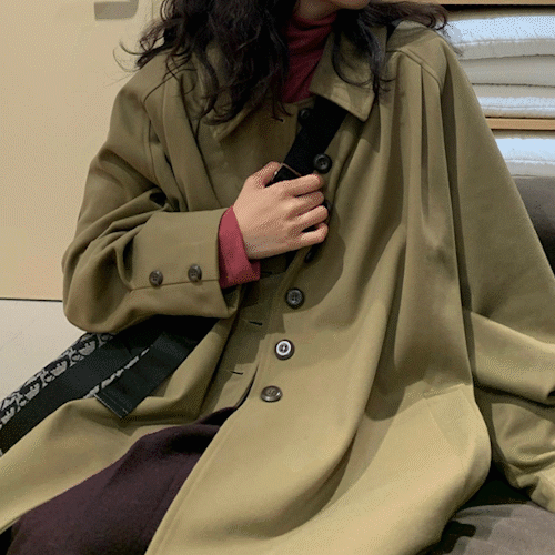 [가을코트/겨울신상]오버핏 카키 그린 코트원피스 윈드브레이커 미디 롱자켓 봄 겨울 롱코트 캐주얼 루즈핏 박시 싱글 브레스트 바바리코트 일자원피스 트렌치 코트