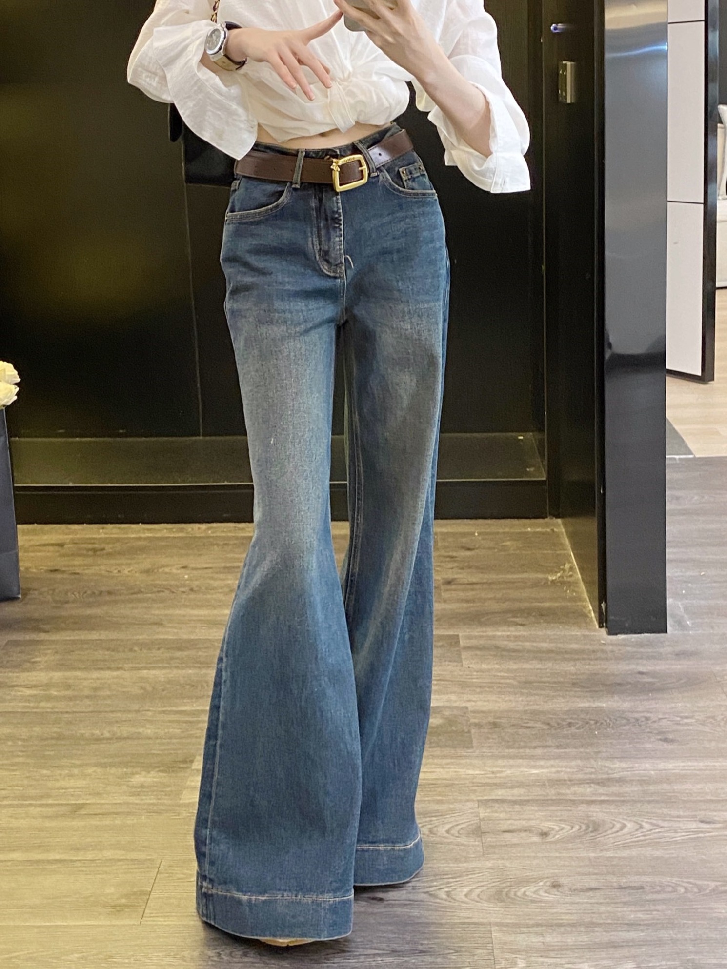 카우 벨트 부츠컷 청팬츠