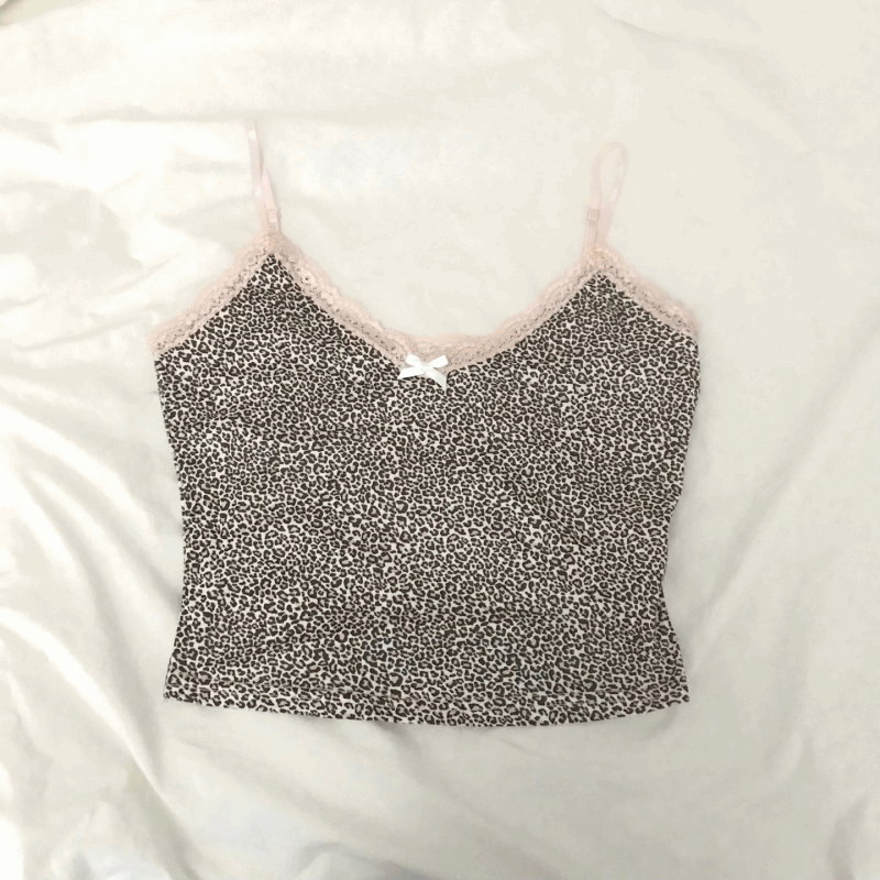 leopard pink lace sleeveless - 레오파드 핑크 레이스 나시탑