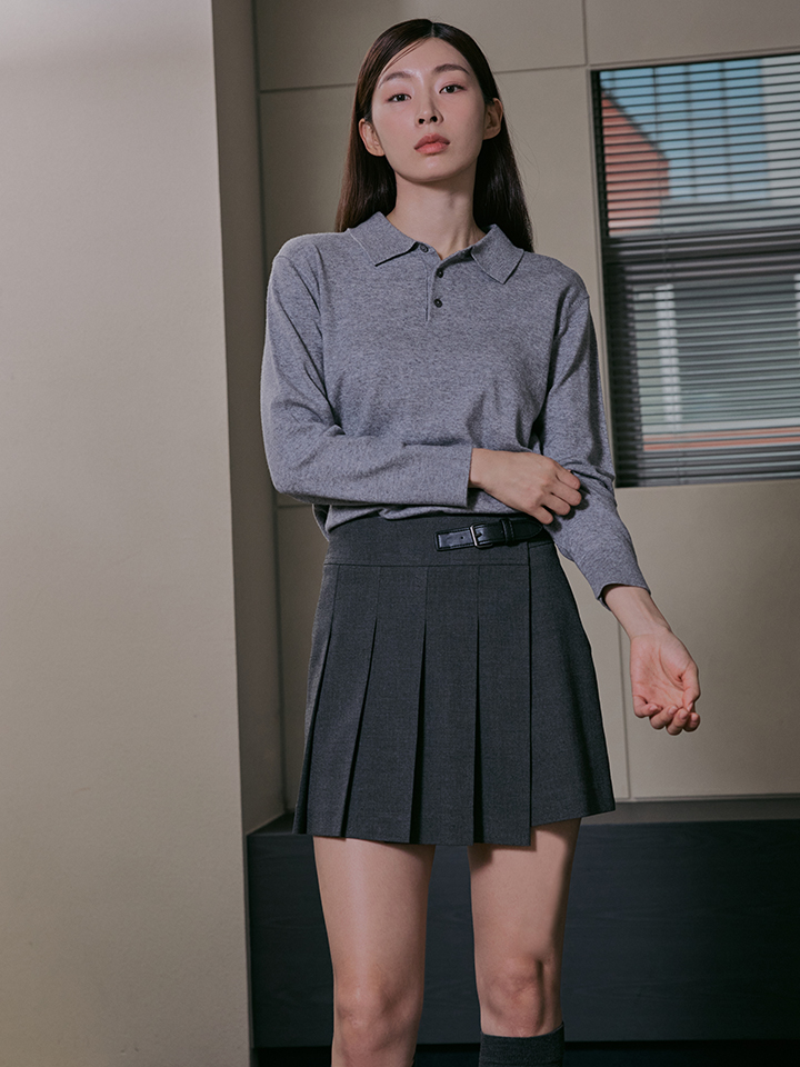 여성) 캐시블렌드 루즈핏 버튼 카라 스웨터_EPE4ET2110