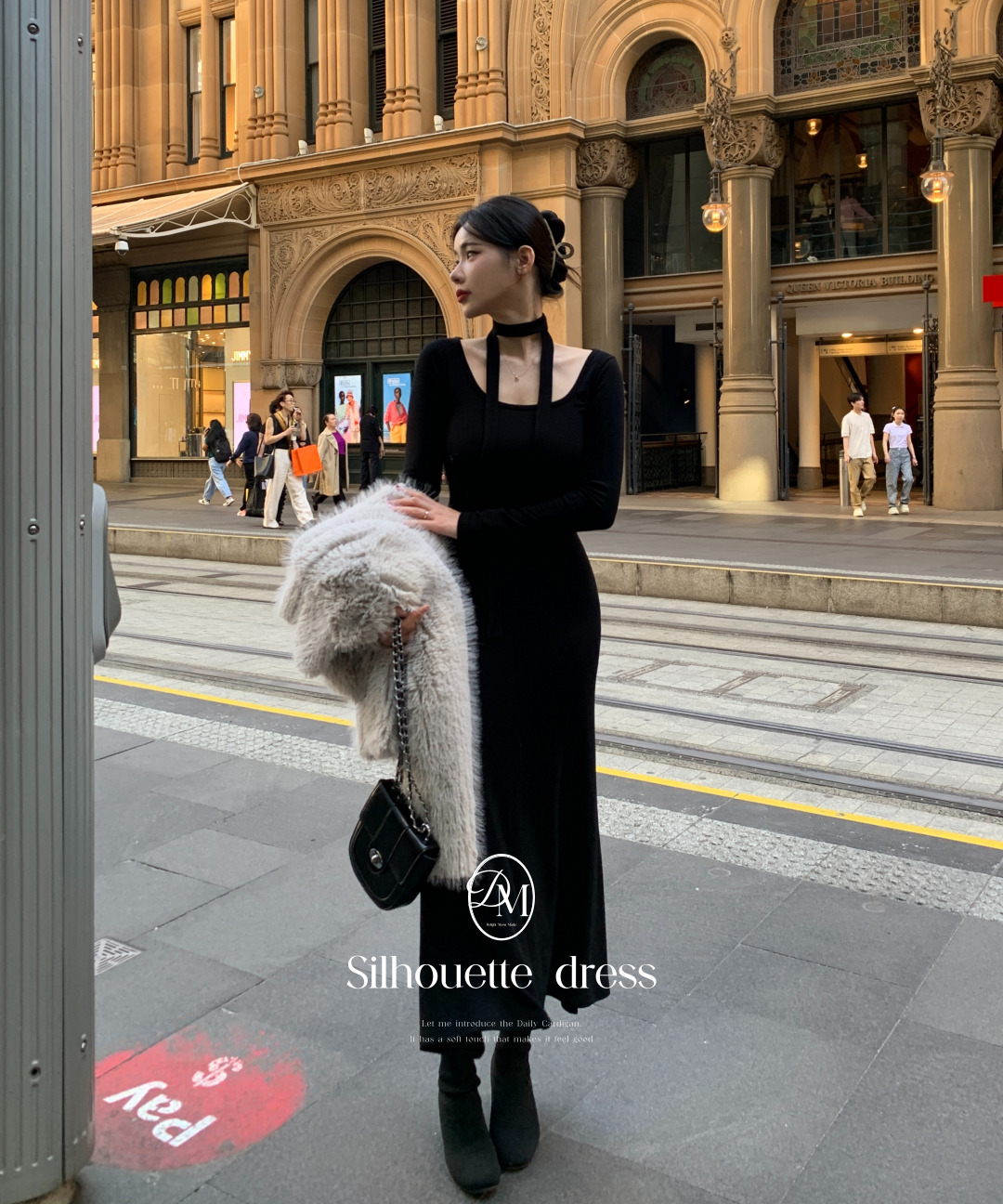 [delight made] 실루엣 타이 원피스/연말룩/하객룩/크리스마스/겨울하객룩/겨울원피스/니트원피스/겨울롱원피스/기모원피스/크리스마스룩/레드원피스/레드코디/레드/빨간원피스