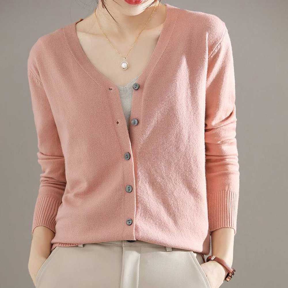 여자 여성니트여성가디건 룩 봄 여성니트가디건스웨터 브이넥 코디 나들이 가디건