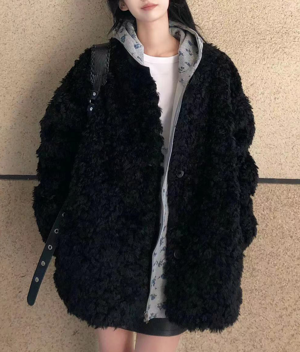 뽀글이 오버사이즈 노카라 플리스 두꺼운 겨울 코트