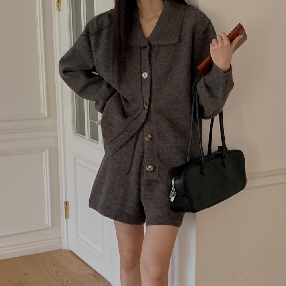 니트 카라 가디건 반바지 셋업 여성 가을 겨울 루즈핏 니트 투피스 세트 등하원룩