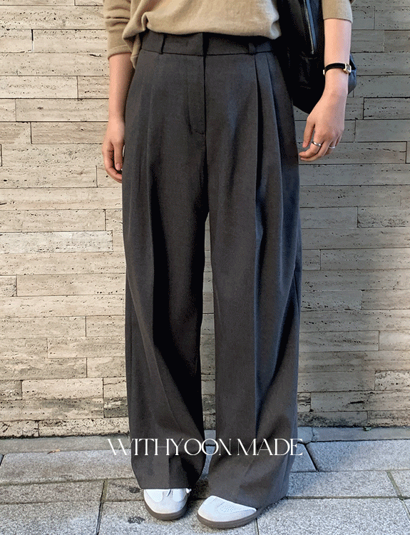 [자체제작] 웜 기모 핀턱 와이드 슬랙스[🚚오늘출고]