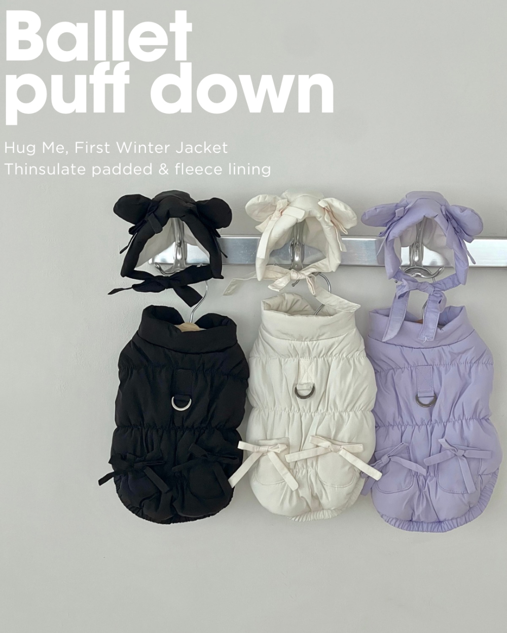 어도러블 퍼프 패딩 신슐레이트 리본 발레코어 S-2XL 강아지옷 애견의류 겨울옷