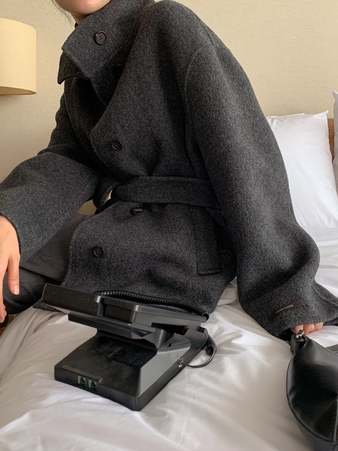 [핸드메이드] 오엘드 하이넥 벨트 하프 코트
