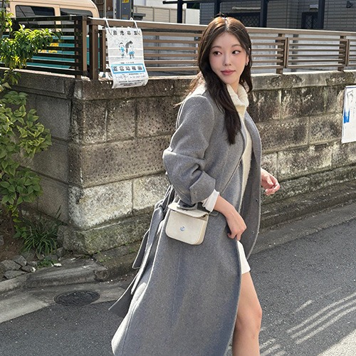 [울 90%/패딩내피] 플랏 핸드메이드 벨트 롱 코트