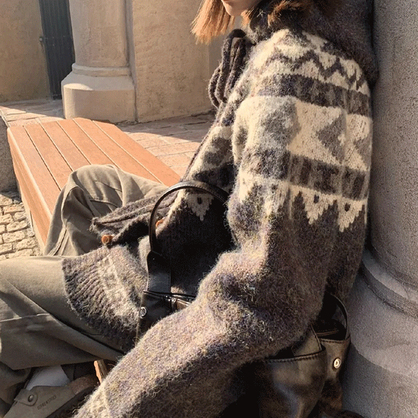 [오늘출발] 캐츠 아가일 후드 니트 가디건