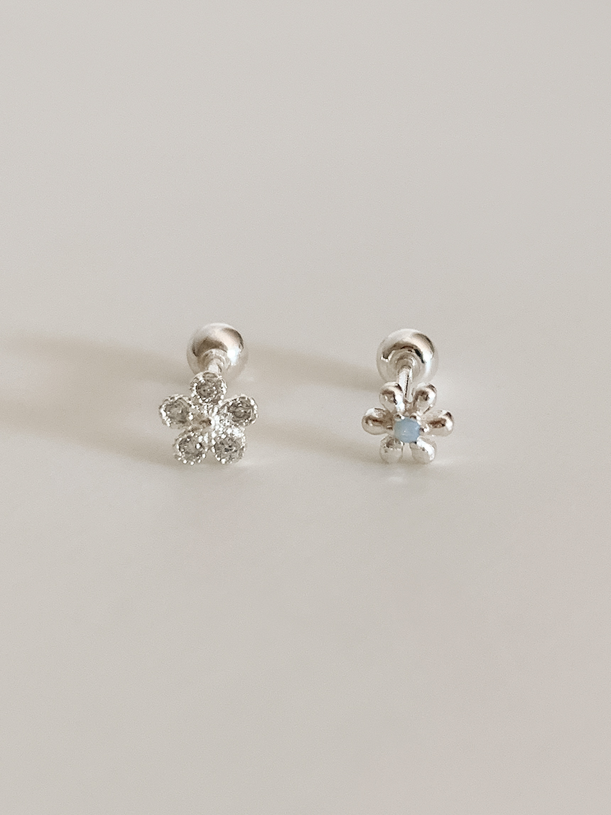 실버 미니 멜팅 데이지 플라워 귀걸이 피어싱
