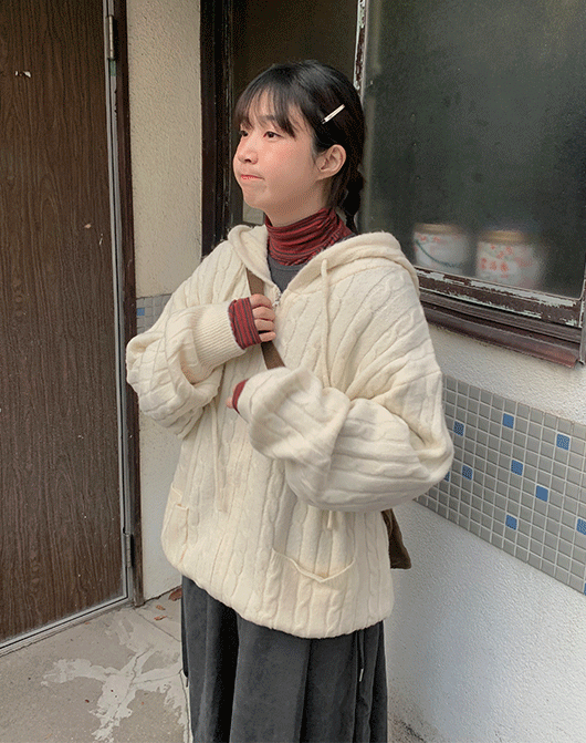 [unisex] 아쿠노 투웨이 꽈배기 오버 니트 후드 집업 (5color)