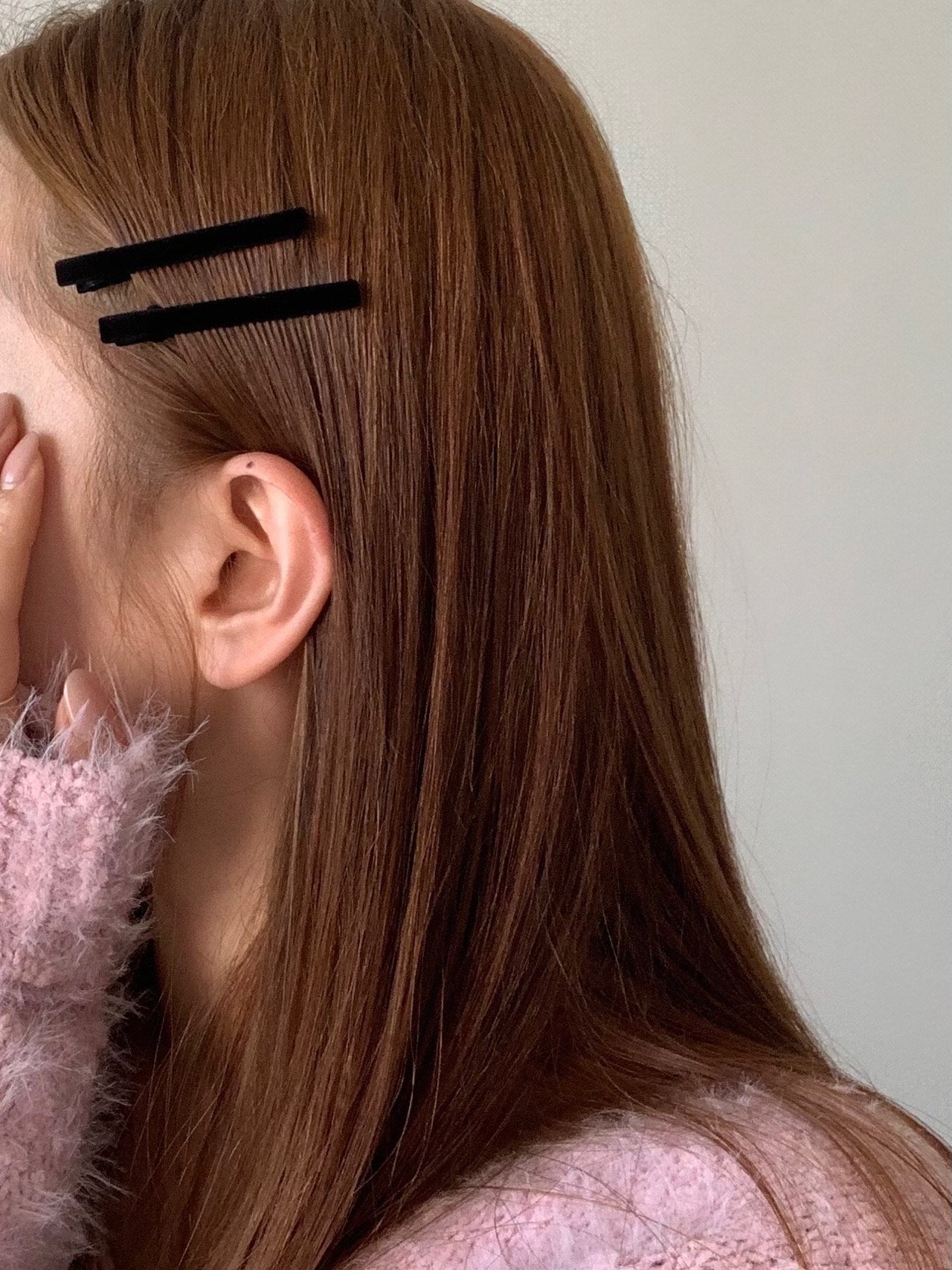 [국내제작/1+1] 2개세트♥ 파이 블랙 벨벳 슬림 일자 6cm 미니 옆머리 앞머리 고정 집게핀 1color