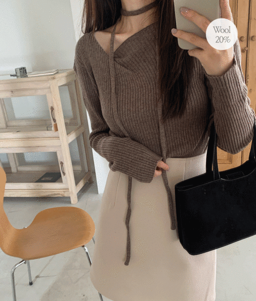 앙고라언발니트 타이set 4color 데일리룩/러블리/앙고라니트/언발니트/타이니트/슬림핏니트/이너니트/간절기니트