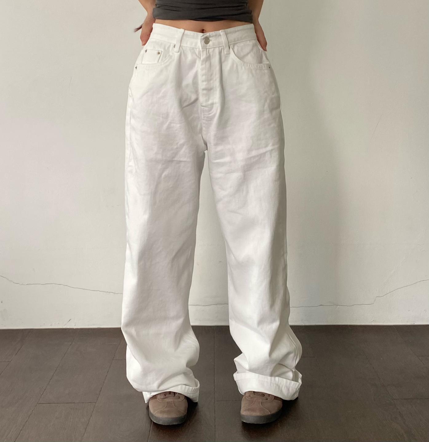 기본템!! ☁ 아이보리 화이트 코튼 데님 와이드 벌룬핏 하이웨스트 하체커버 루즈핏 흰색 통 면 롱 가을 봄 바지 팬츠