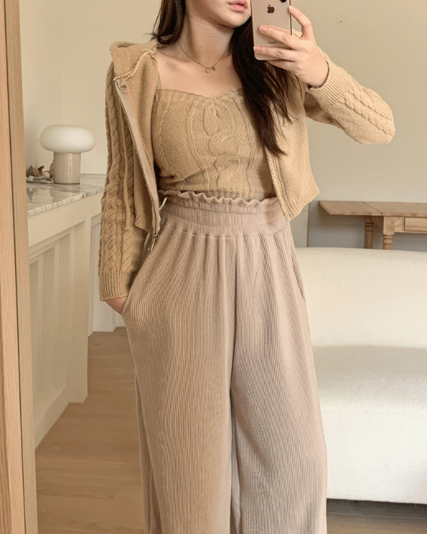 [무료배송][SET]레나 꽈배기니트 후드 가디건+ 하트넥 나시 투피스 세트set 3color