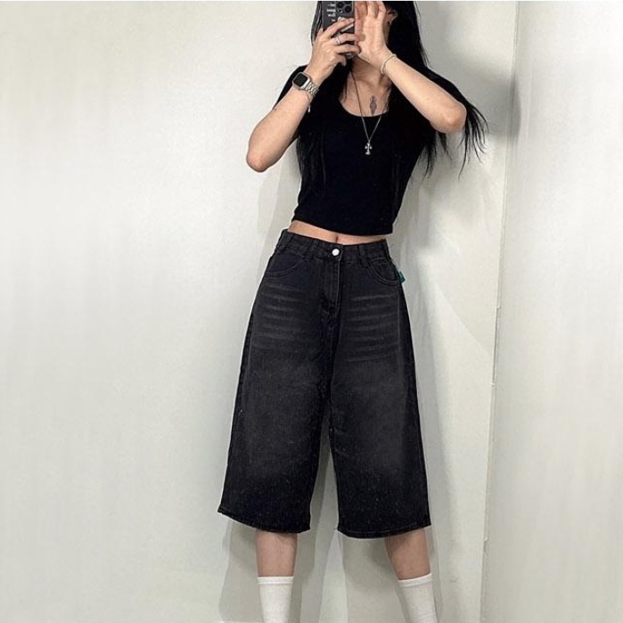 헤드빙 여자 와이드팬드 버뮤다팬츠 와이드데님팬츠 여성7부와이드 반바지청 버뮤다데님팬츠 벌룬팬츠