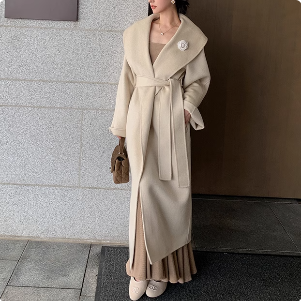 [겨울신상] 핸드메이드 울 80% 숄카라 롱코트 겨울코트 스트랩 랩코트