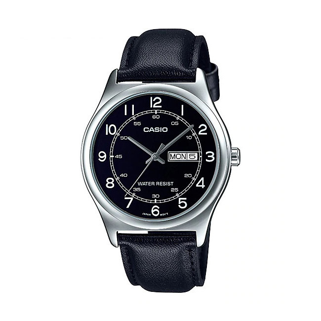 카시오 남성 가죽 손목 시계 MTP-V006L-1B2