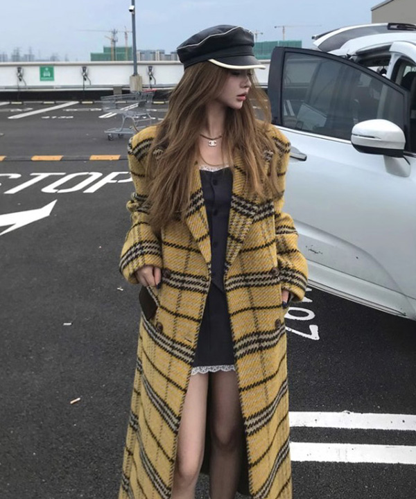 무료배송 빈티지 옐로우체크 맥시 롱코트 (옐로우) #자켓 #코트 #아우터