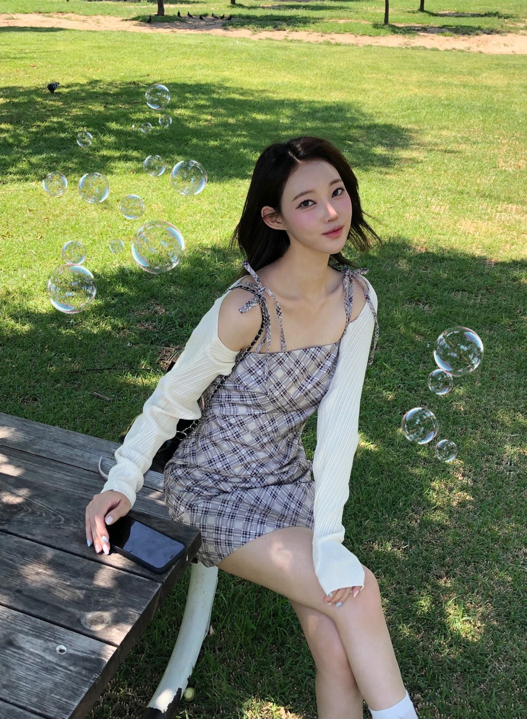 [fw신상🤎/안감내장]가을감성뿜뿜 하이틴 체크 리본끈 나시 미니원피스🧸(2color)