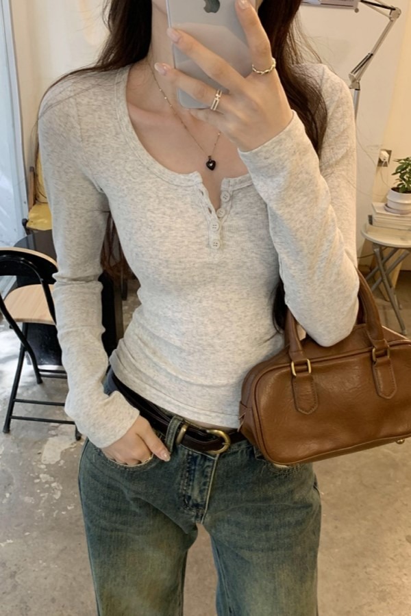 르네아 유넥 긴팔 슬리밍 티셔츠