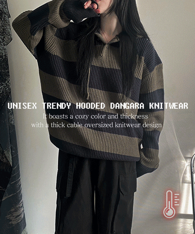 [unisex/퀄좋아요]트렌디 후드 단가라 탄탄 투버튼 오버핏 니트5color