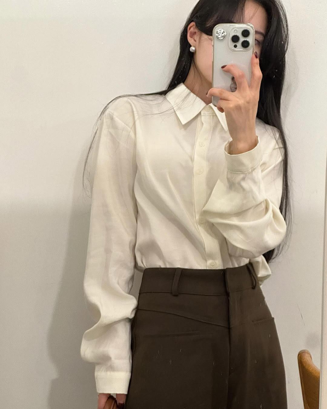 멀피 여성 겨울 하객룩 오피스룩 출근룩 루즈핏 레이어드 이너 피치면 블라우스