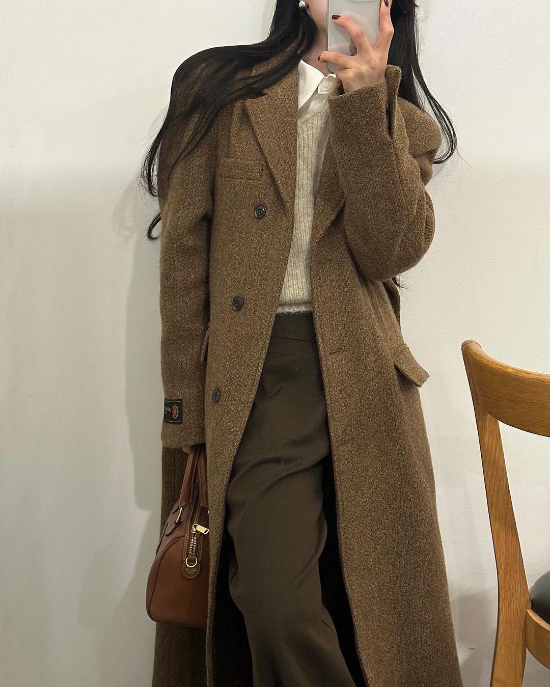 디델 여성 빅카라 울 하객룩 출근룩 오피스룩 오버핏 루즈핏 싱글 롱 코트