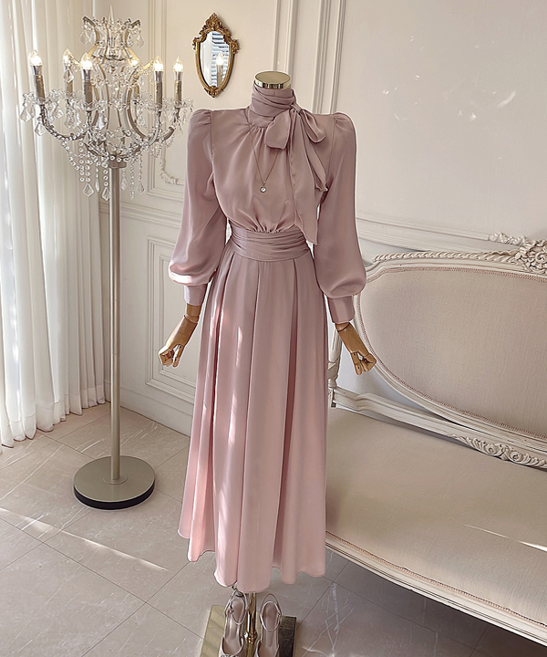 몰브 실크 롱원피스 / 결혼식 하객룩 데이트룩 상견례룩 셀프웨딩 웨딩촬영 파티룩 브라이덜샤워 가을옷 겨울옷 가을원피스 겨울원피스 스카프원피스 새틴원피스 플레어원피스