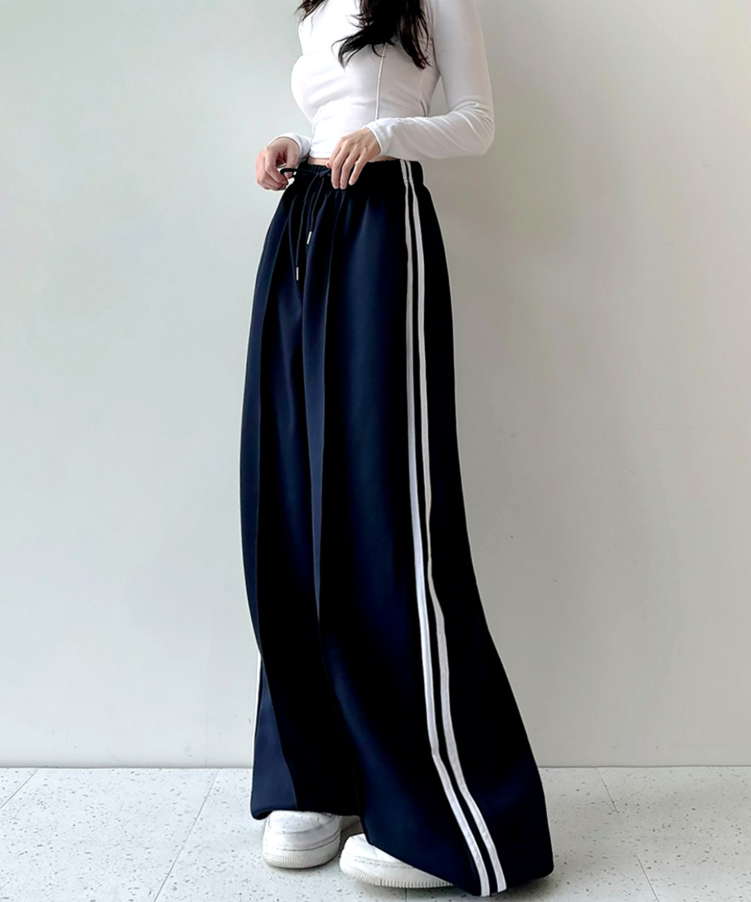 HIP❤[1+1할인/왕박시!]핀턱 포인트 트랙 투라인 와이드 스트링 밴딩 트레이닝 팬츠 3color