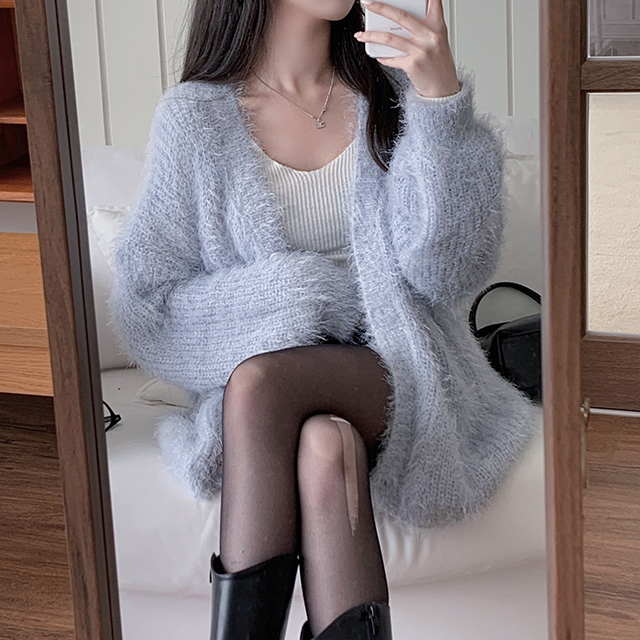 [ 털빠짐없는/ 고퀄 ] 버들 포켓 퍼 앙고라 니트 가디건