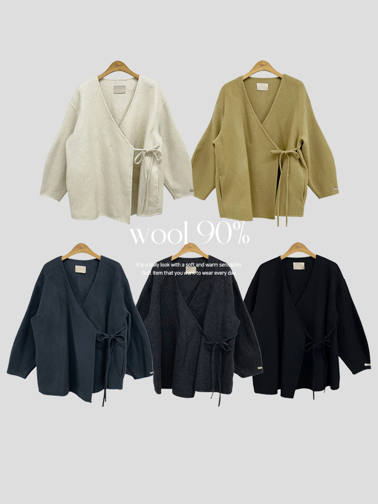 [울90] 웬터 노카라 랩 리본 핸드메이드자켓