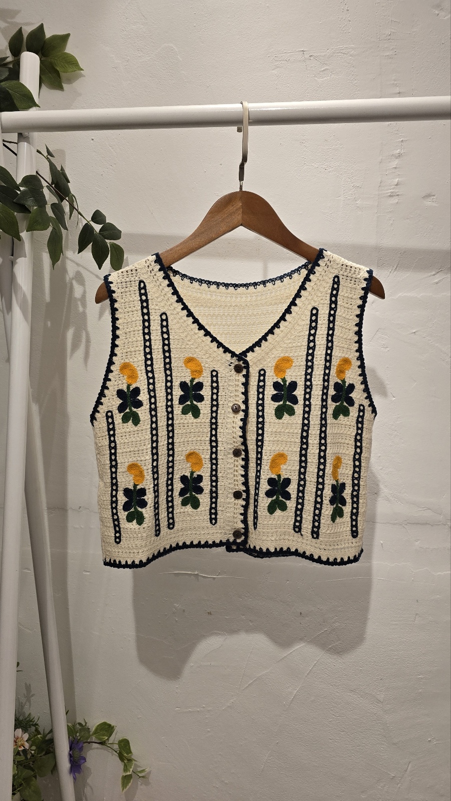 에스닉 플라워 자수 뜨개 크로셰 패치워크 조끼 베스트 휴가룩 동남아룩 빈티지 아메카지