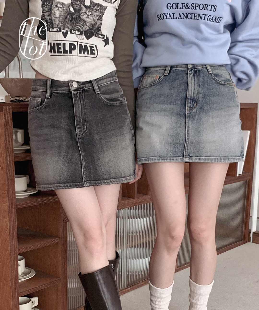 (당일) [중청/흑청] 워싱 올브러쉬 데님 일자 미니 스커트 (2color) 치마