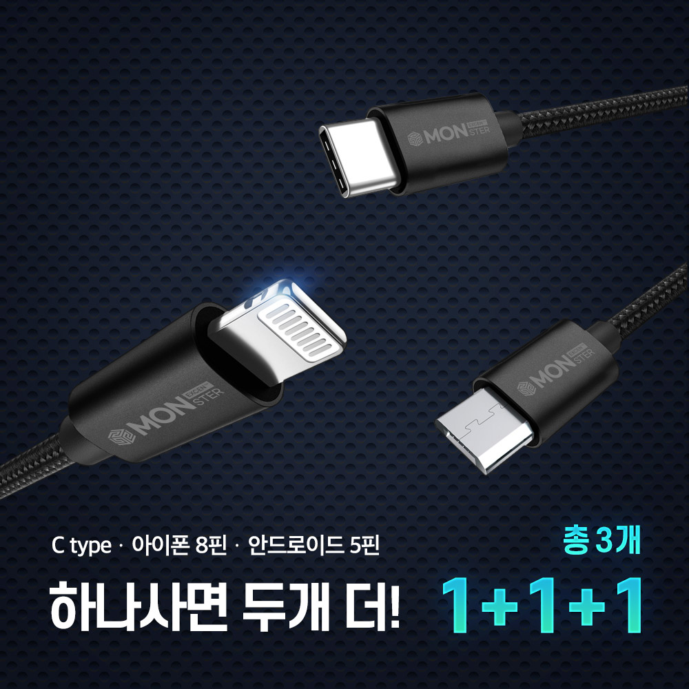 몬스터엑센 테슬라픽 패브릭 고속충전케이블 3개 C타입5핀8핀