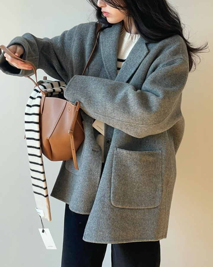 (당일)에이미그레이스 하프 누빔 핸드메이드 자켓 여성 겨울 사각포켓 포멀 미디코트 (85162)