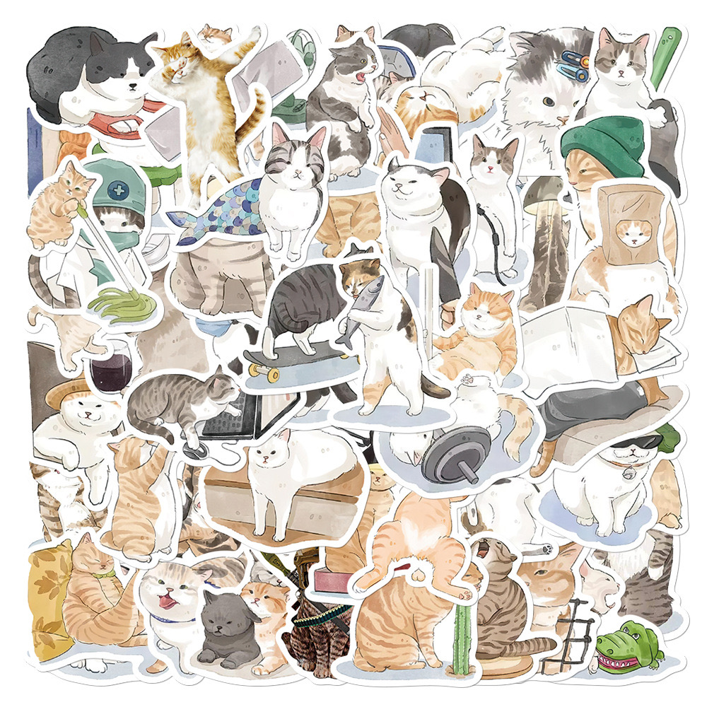 48p 고양이의 일상 조각스티커 빈티지 감성 캐리어 다꾸 노트북 다이어리 꾸미기