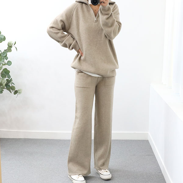여성 루리 니트 반집업 트레이닝복 운동복 츄리닝 홈웨어 세트
