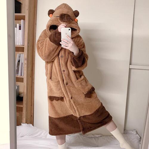 퀸페이지 카피바라 동물 잠옷 극세사 수면 가운 후드 파자마 파티 캐릭터 커플 실내복