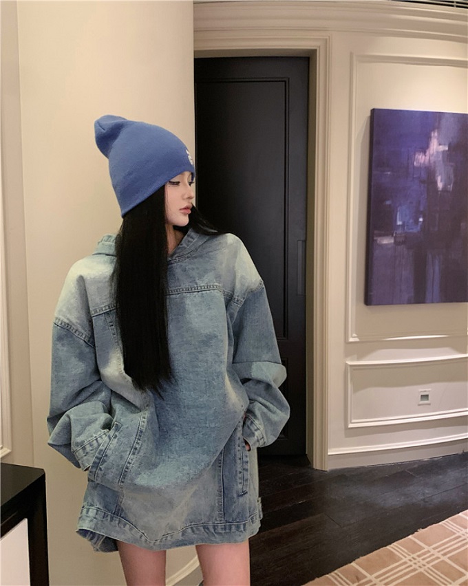 [수입고퀄💙외국언니룩] 데님 오버핏 후드티 꾸안꾸 유니크 S~L 청후드티 데님후드티 박스티