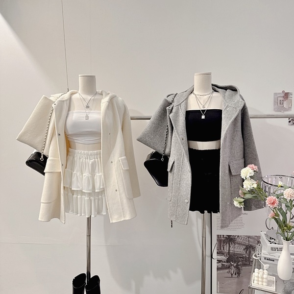 [핸드메이드!/울100%!] 뒷단추포인트, 겨울 오뜨 핸드메이드 양모 울 케이프 버튼 포켓 오버핏 슬림핏 벌룬 퍼프 무지 긴팔 하프 후드 숏 코트 자켓 [4color]