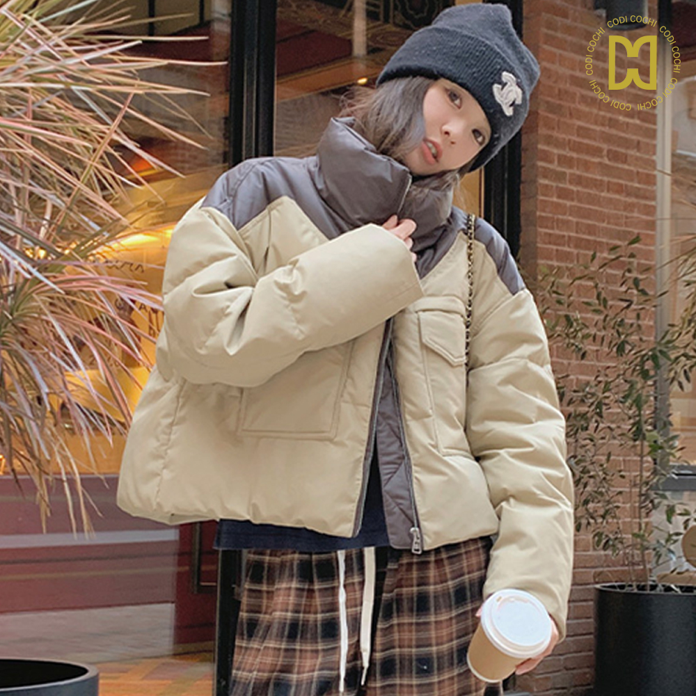 코디코치 여자 포켓 패딩 점퍼 캐주얼 오버핏 크롭 아우터 다운 자켓