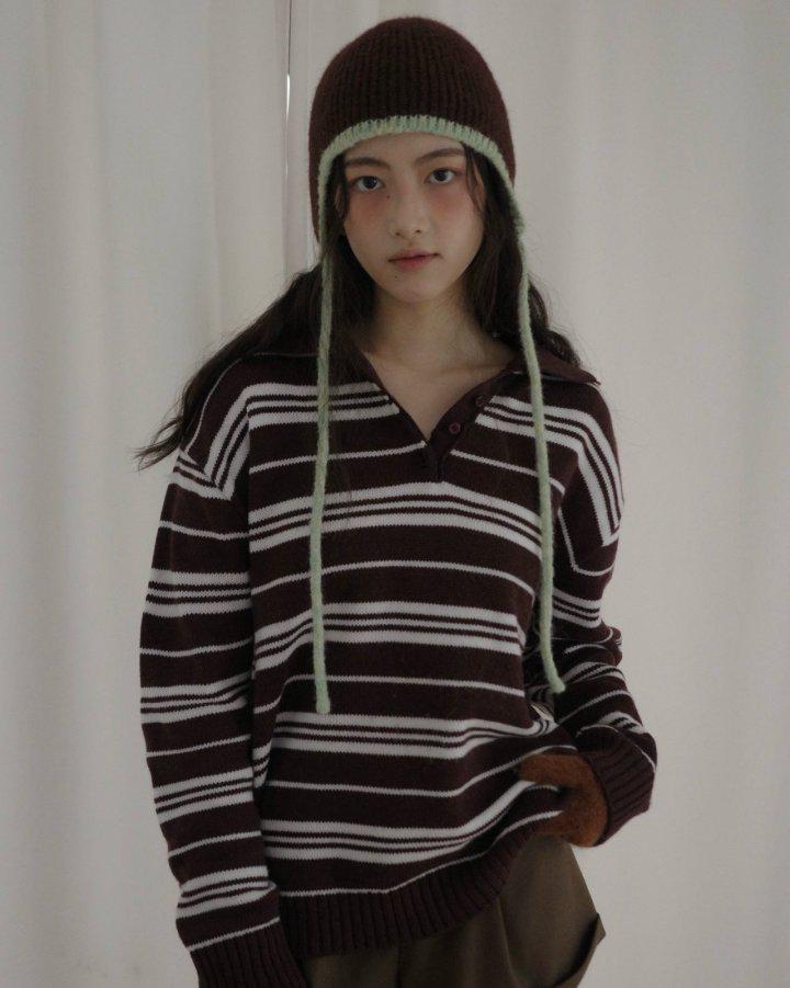Amiment 아미먼트 포그 카라 니트 스트라이프 긴팔 루즈핏 PK nt (3 color)