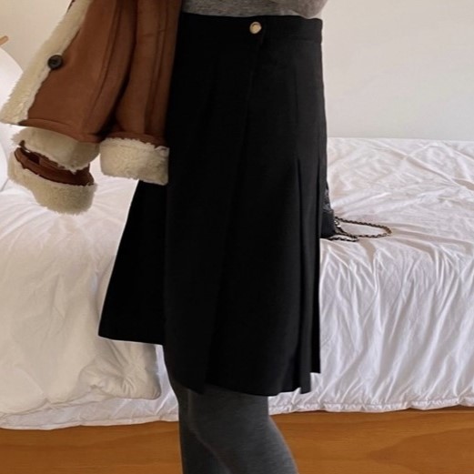 썸띵엘스 베리울랩스커트 검정치마 겨울 모직스커트