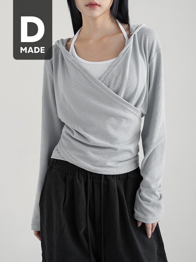 [2천장돌파][MADE] 빅사이즈 55-99 마리 브이넥 후드 골지 랩 레이어드 니트 긴팔 티셔츠