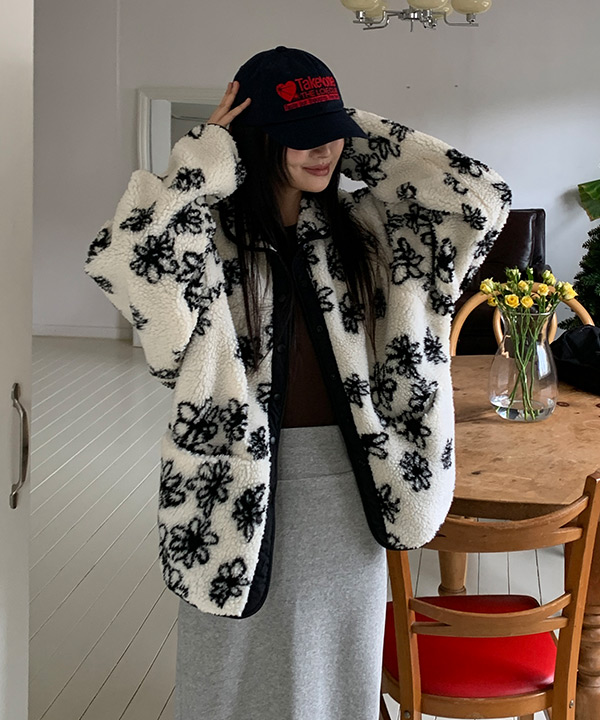 [양면착용/후드추가] 엔티브 리버서블 플라워 도트 플리스 뽀글이 후드 점퍼 -4color