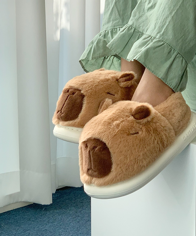 귀여운 카피바라 털실내화 실내화 슬리퍼 포근한 겨울슬리퍼 털 실내화 교실 거실화 친구 커플