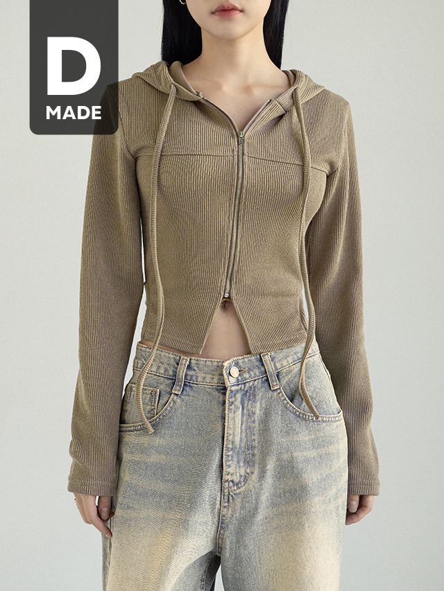 [1천장돌파][MADE] 빅사이즈 44-99 바드 슬림 핏 골지 사이드 슬릿 절개 세미 크롭 후드 니트 집업 자켓